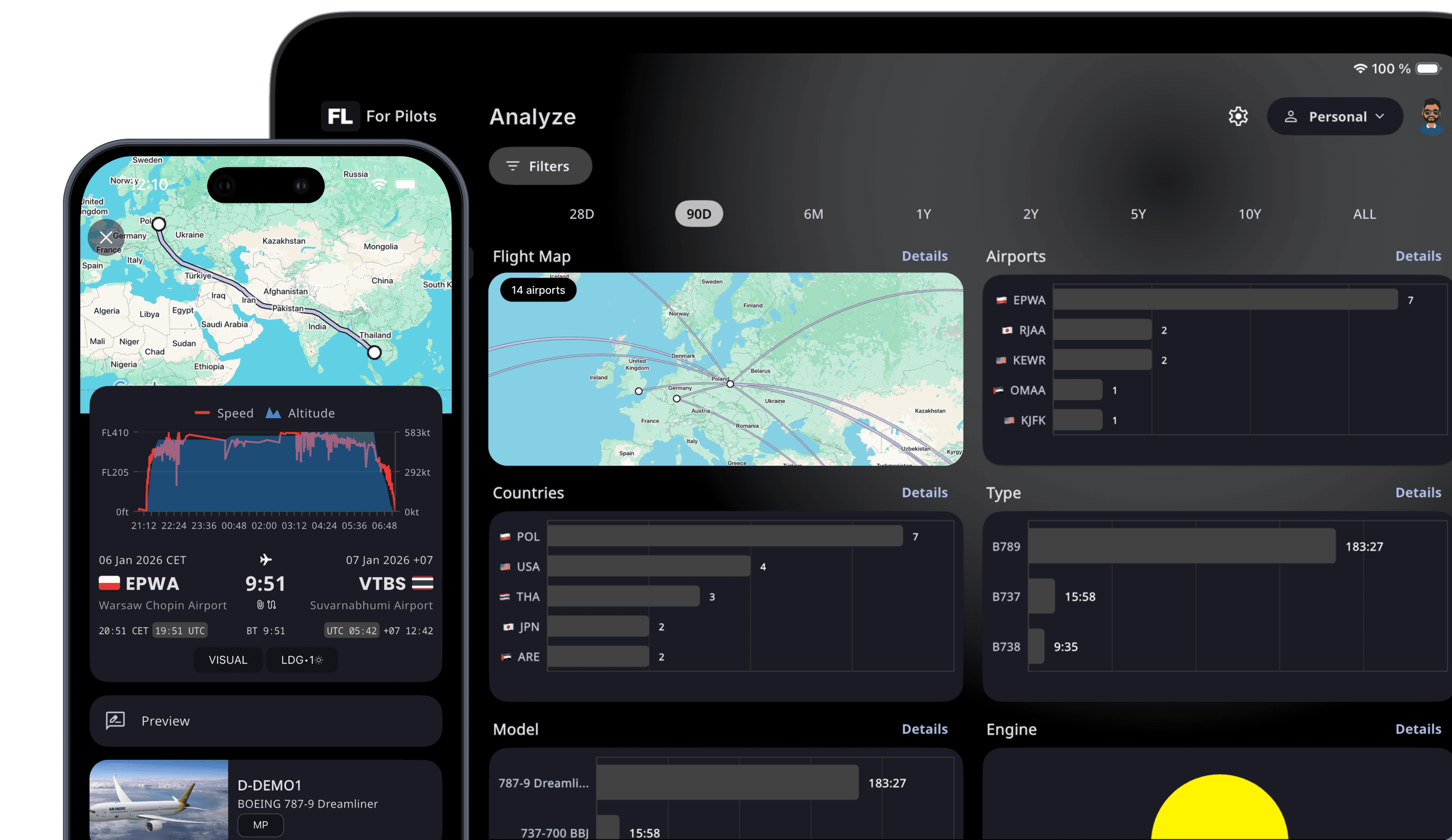 Digital pilot logbook and navigation designed for pilots at every stage of their flying career.