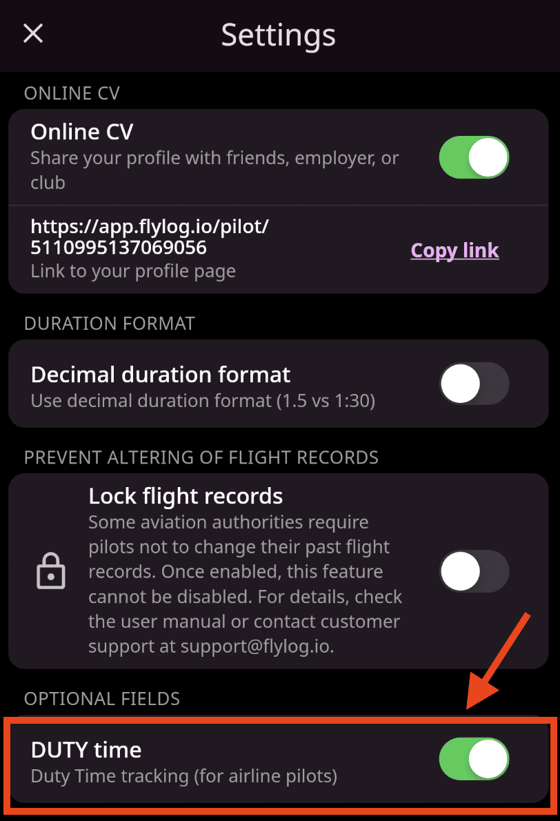 Note: Duty time is usually not part of a standard pilot logbook, but it is relevant for duty and rest rules as well as fatigue management.