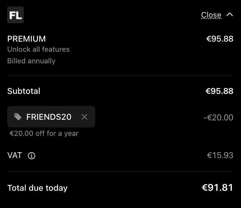 Every successful referral earns you an additional €20 / $20 credit, so inviting more friends means saving more on your subscription.