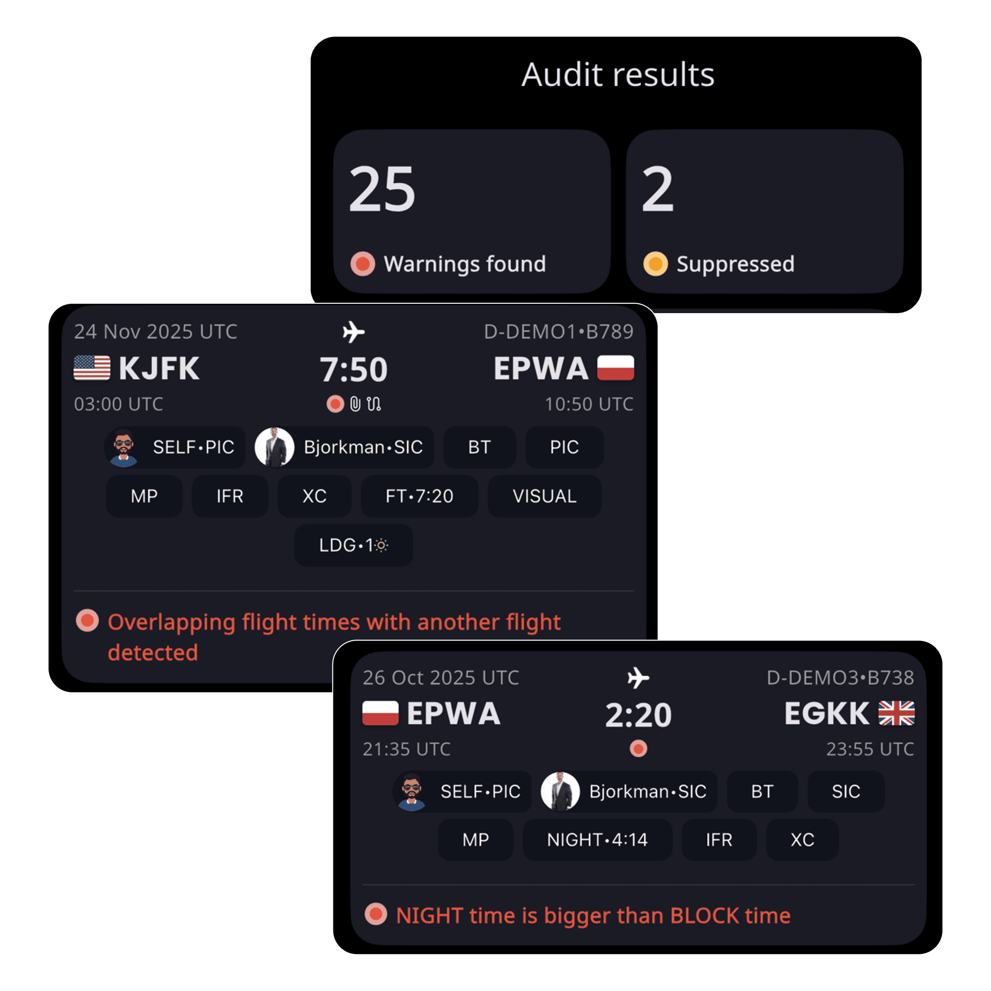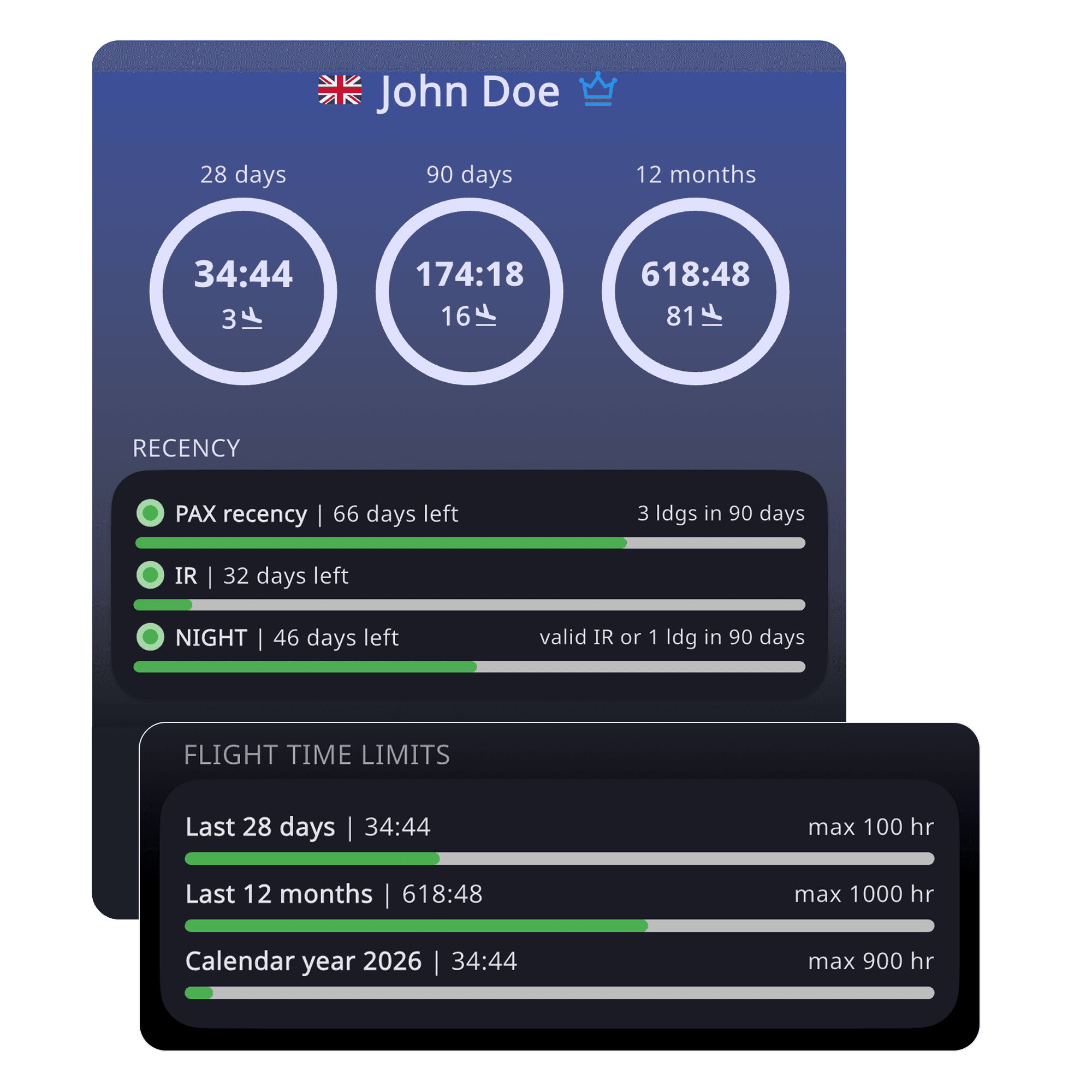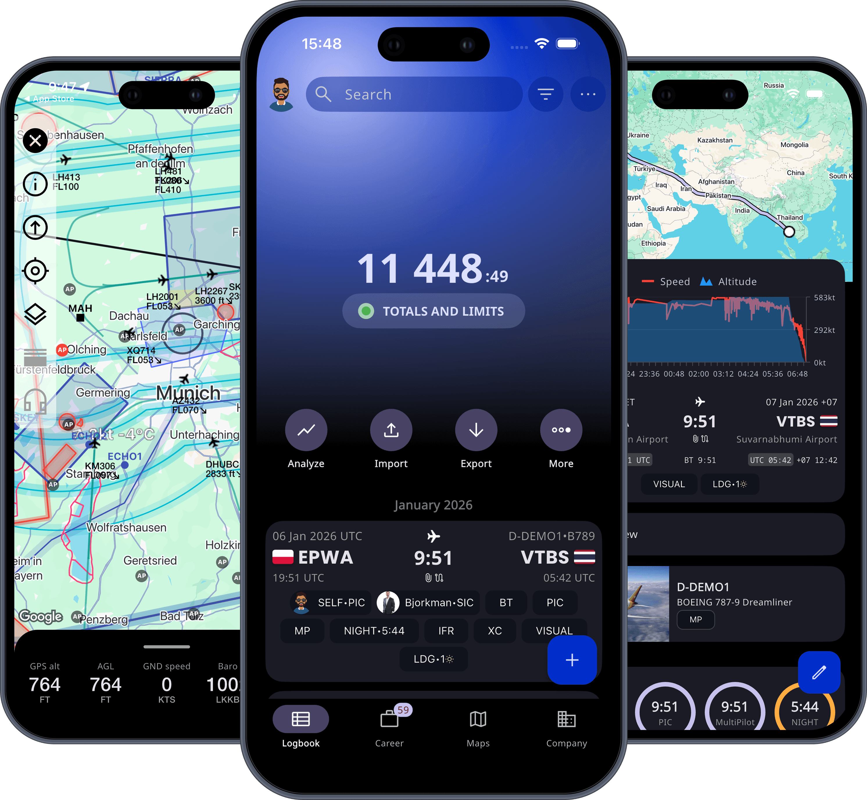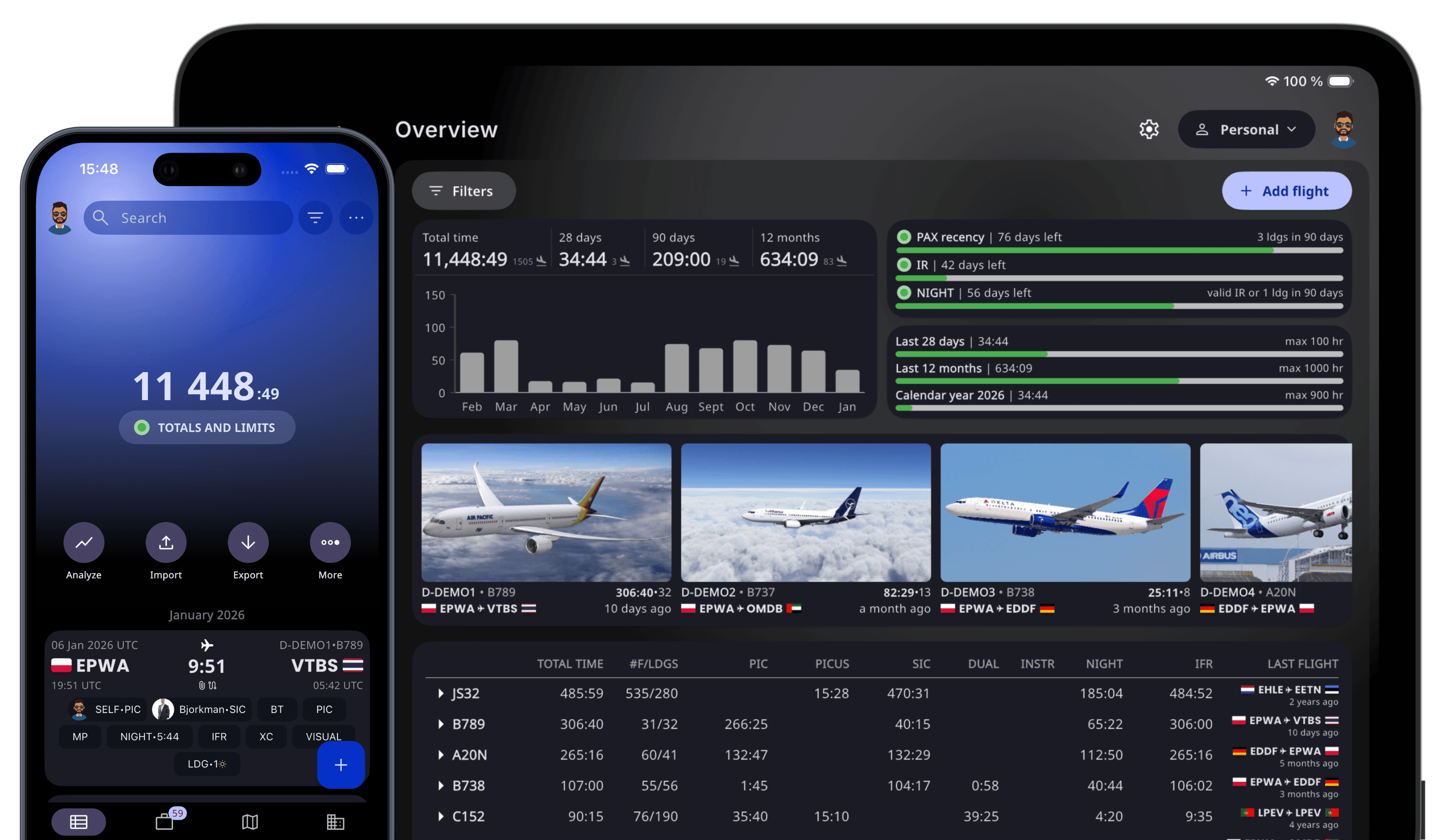 Use this for logging company hours (jet time). Super simple to upload from crewing software. Exports in multiple different aviation authority formats.