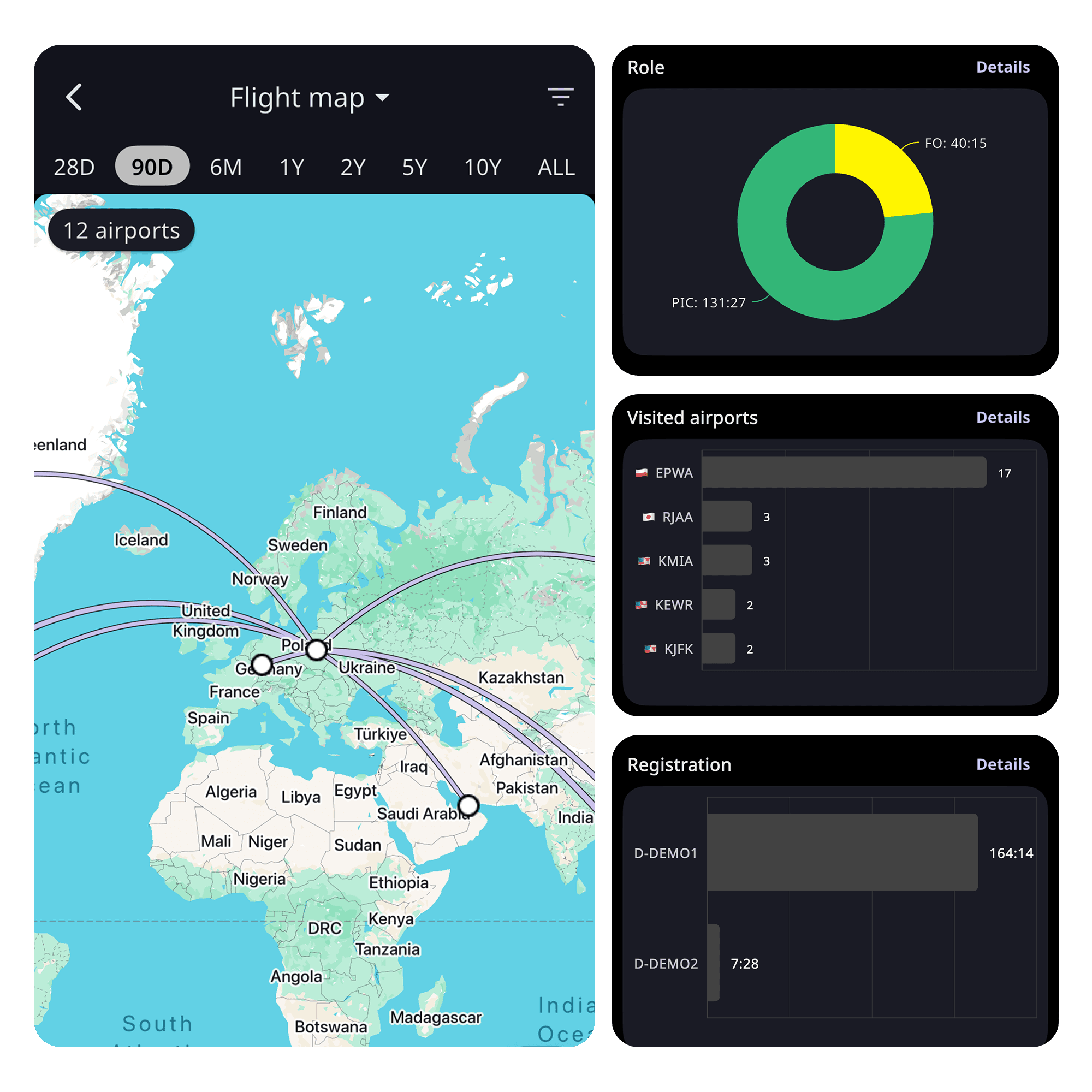Good app, easy to use UI and UX, import from various sources of Logbook, easy export to international Logbook format. Aircraft registration data auto fetch.