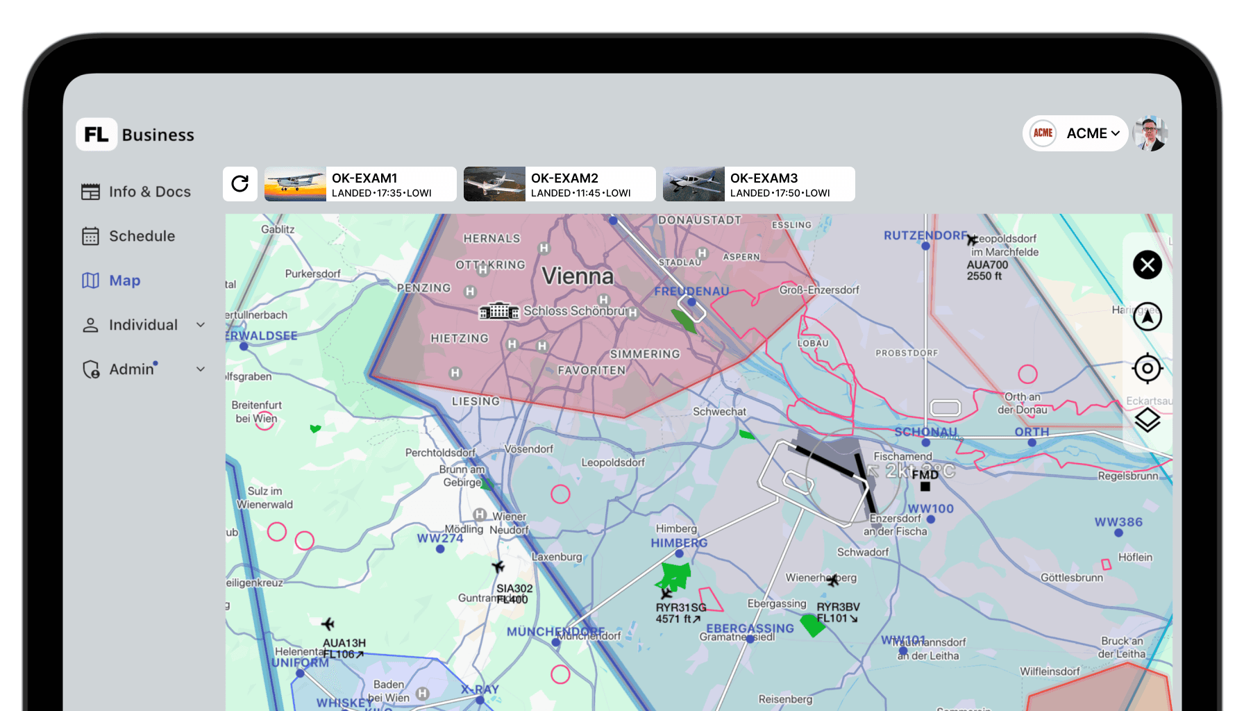 The Map section has been redesigned and now includes live tracking of your company fleet, providing a clearer operational overview of aircraft activity.